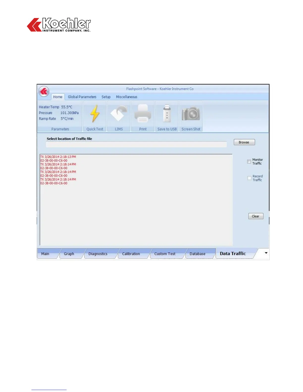 Record Traffic box. This function is useful in a troubleshooting situation. A file containing a record of