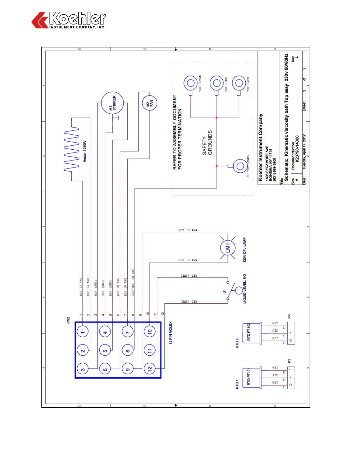 Koehler KV3000 - 220-240 V Top Assembly Wiring (K23790, K23796)