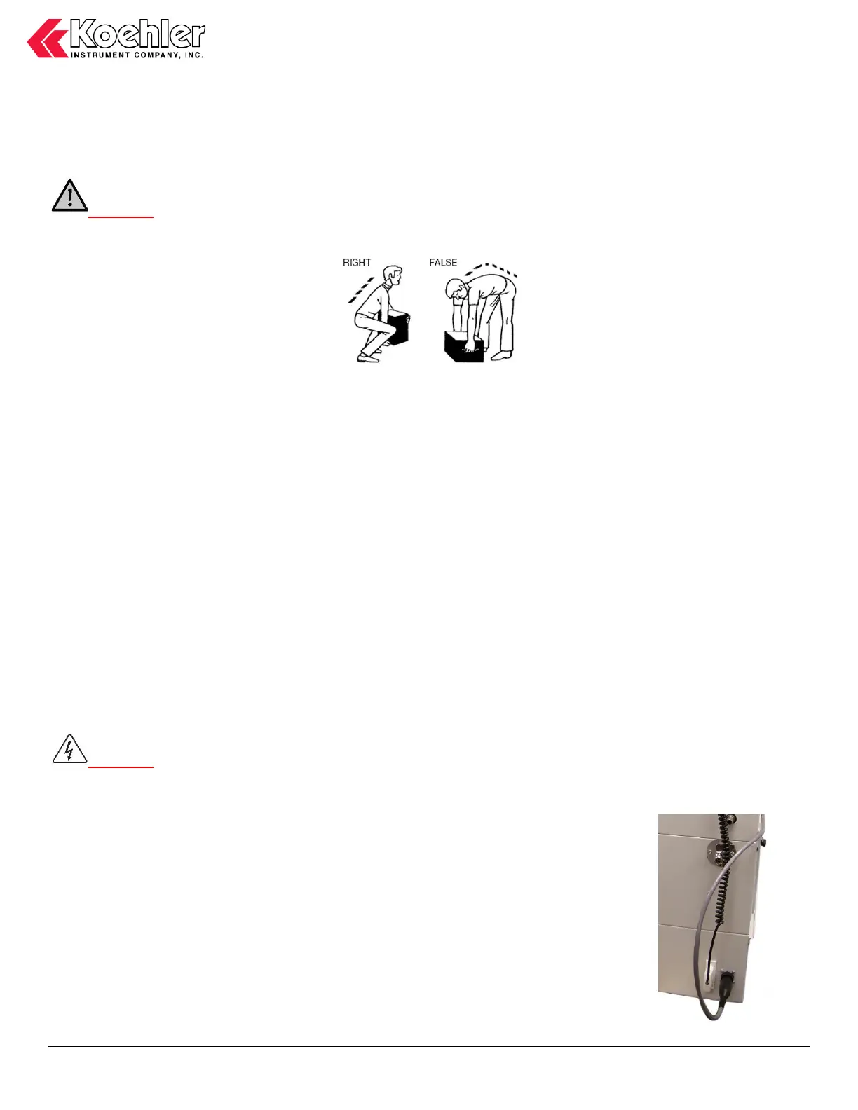 request that the carrier inspect the shipping container and equipment. Do not return goods to Koehler without written authorization.