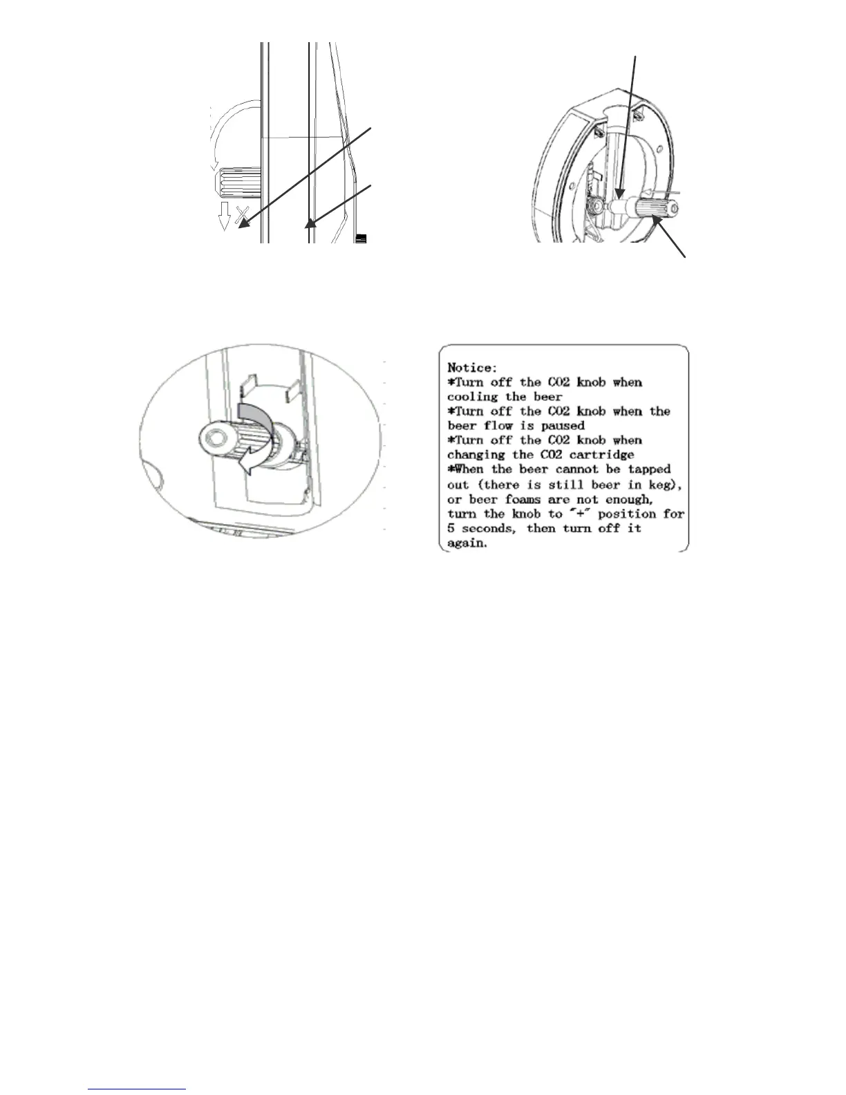 de draai de knop op de bovenklep om "+" positie om de CO2 vrij, en