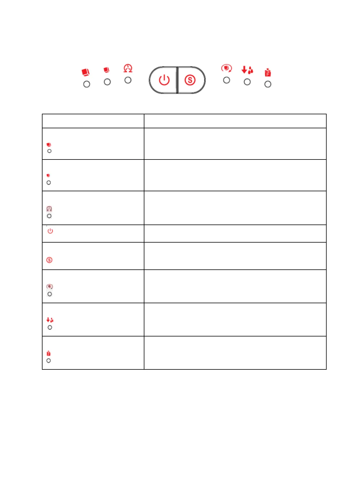 De indicator brandt rood als het waterreservoir leeg is.