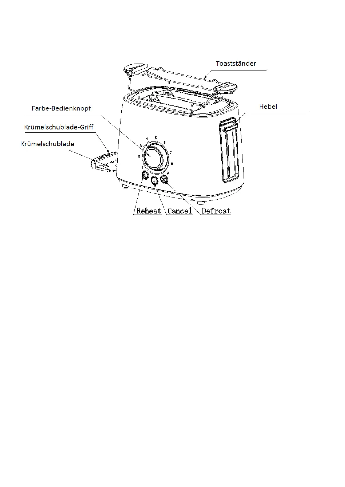 Hinweis: Vor dem Gebrauch, vergewissern Sie sich, dass das Krümelfach richtig posizioniert