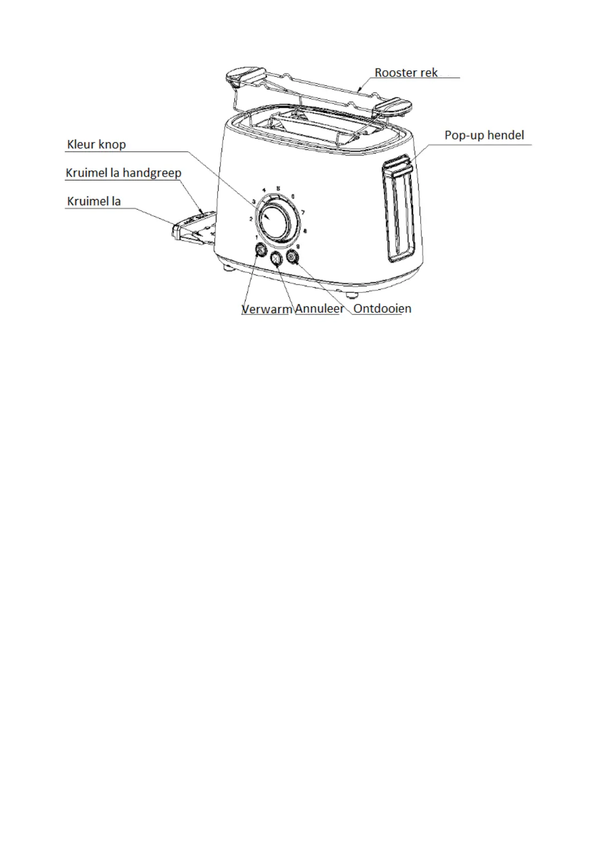 is donkerbruin. Het sneetje brood kan worden geroosterd tot een goudbruine kleur op stand