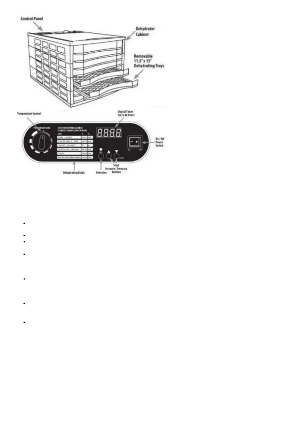 Place the dehydrator on a flat, dry, stable and heat-protected surface. Ensure there is at least 3cm of clearance in all