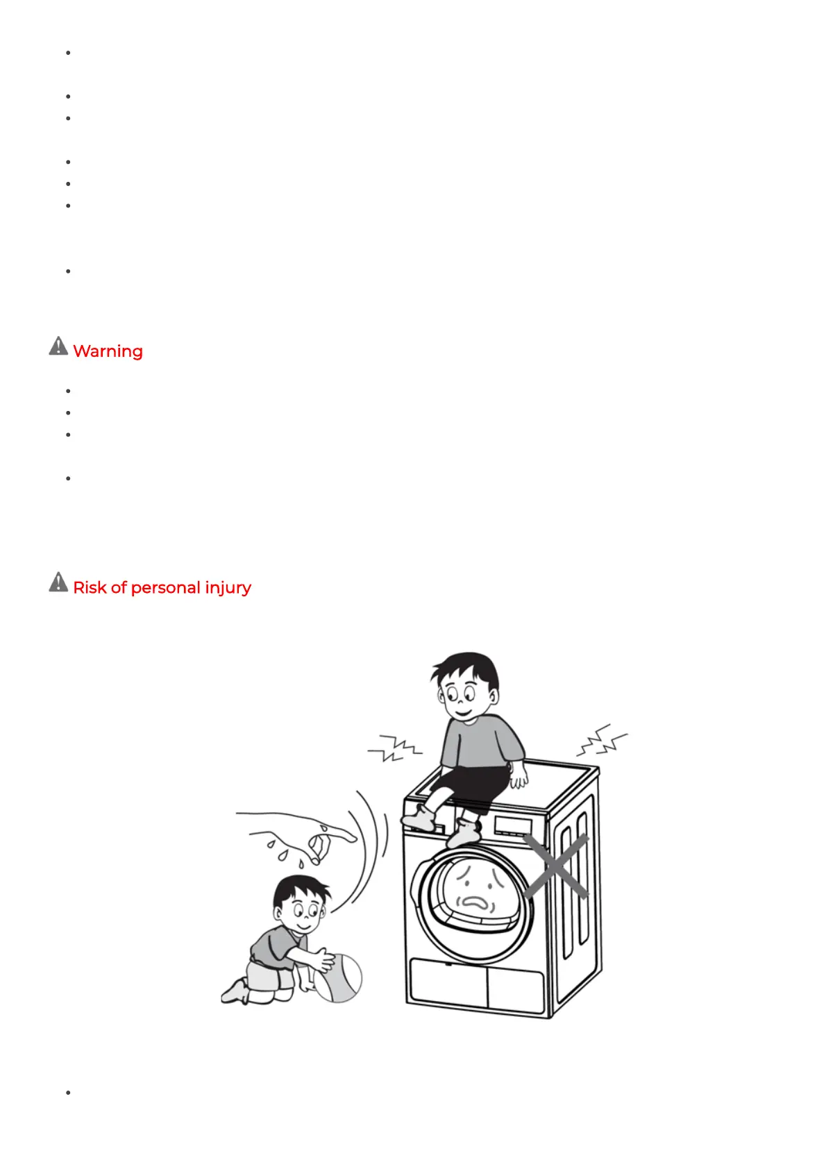 Do not use the appliance to dry cushions, quilts and the like, as these items accumulate heat and can pose a fire