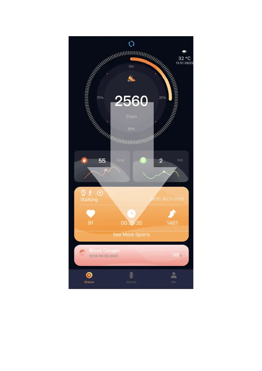 Swipe down on the status screen to refresh and synchronise data on the app.