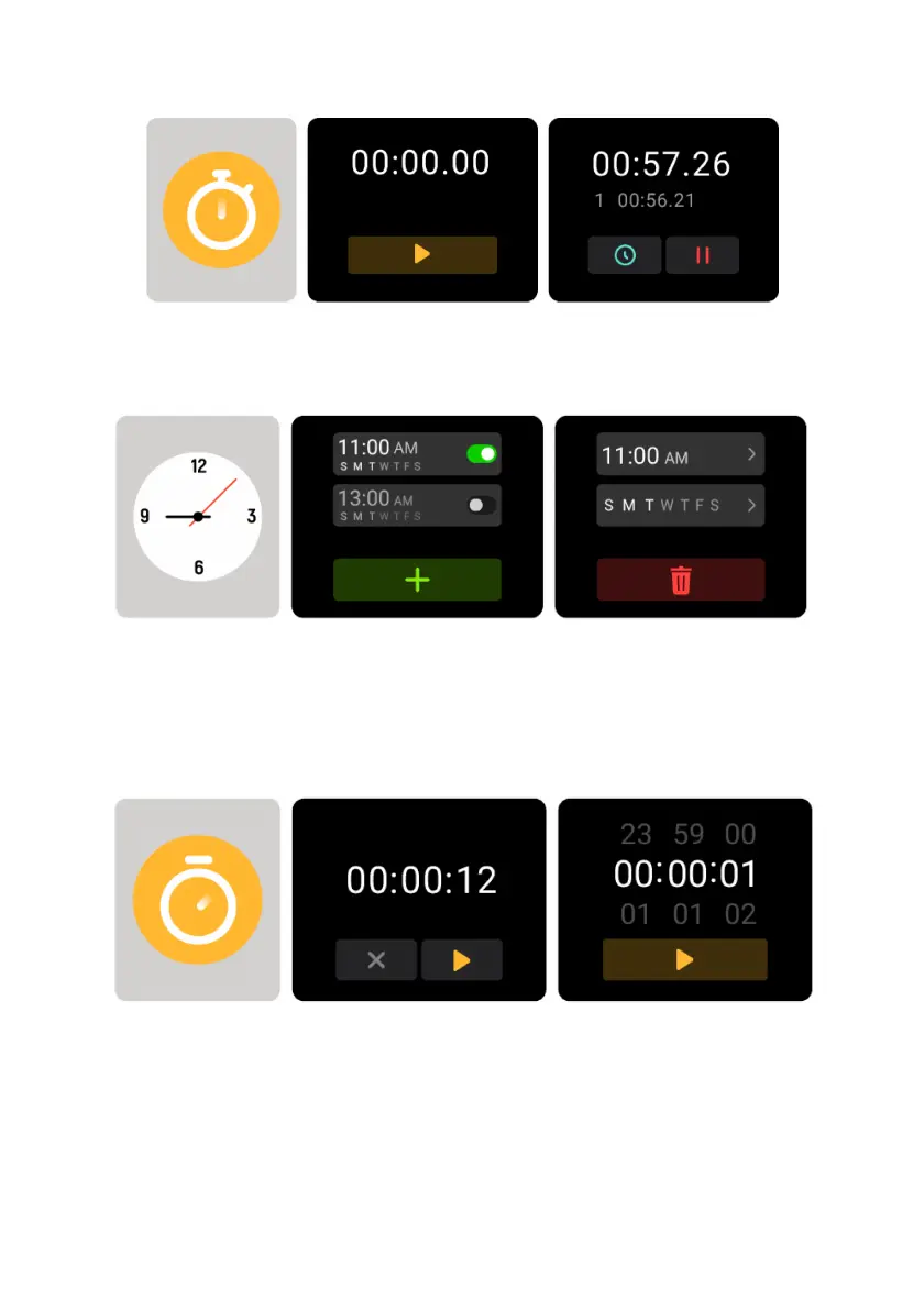 • Use the Alarm app to; add, delete and enable/disable alarms on the watch. You
