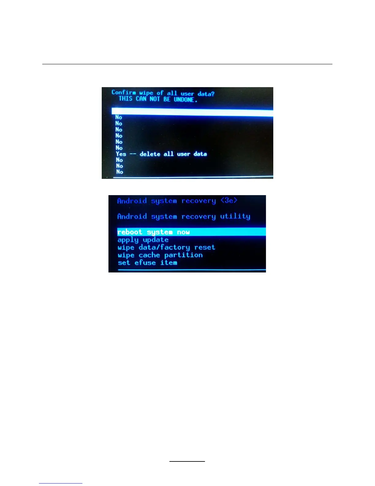 6. Use Up/Down buttons to choose “reboot system now” and enter it, the product will reboot after confirmation