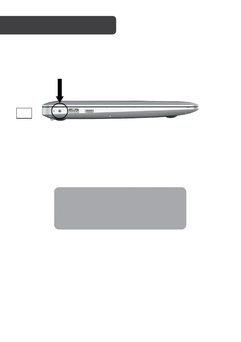 b. Insert adapter into the laptop’s power input port. The indicator light will