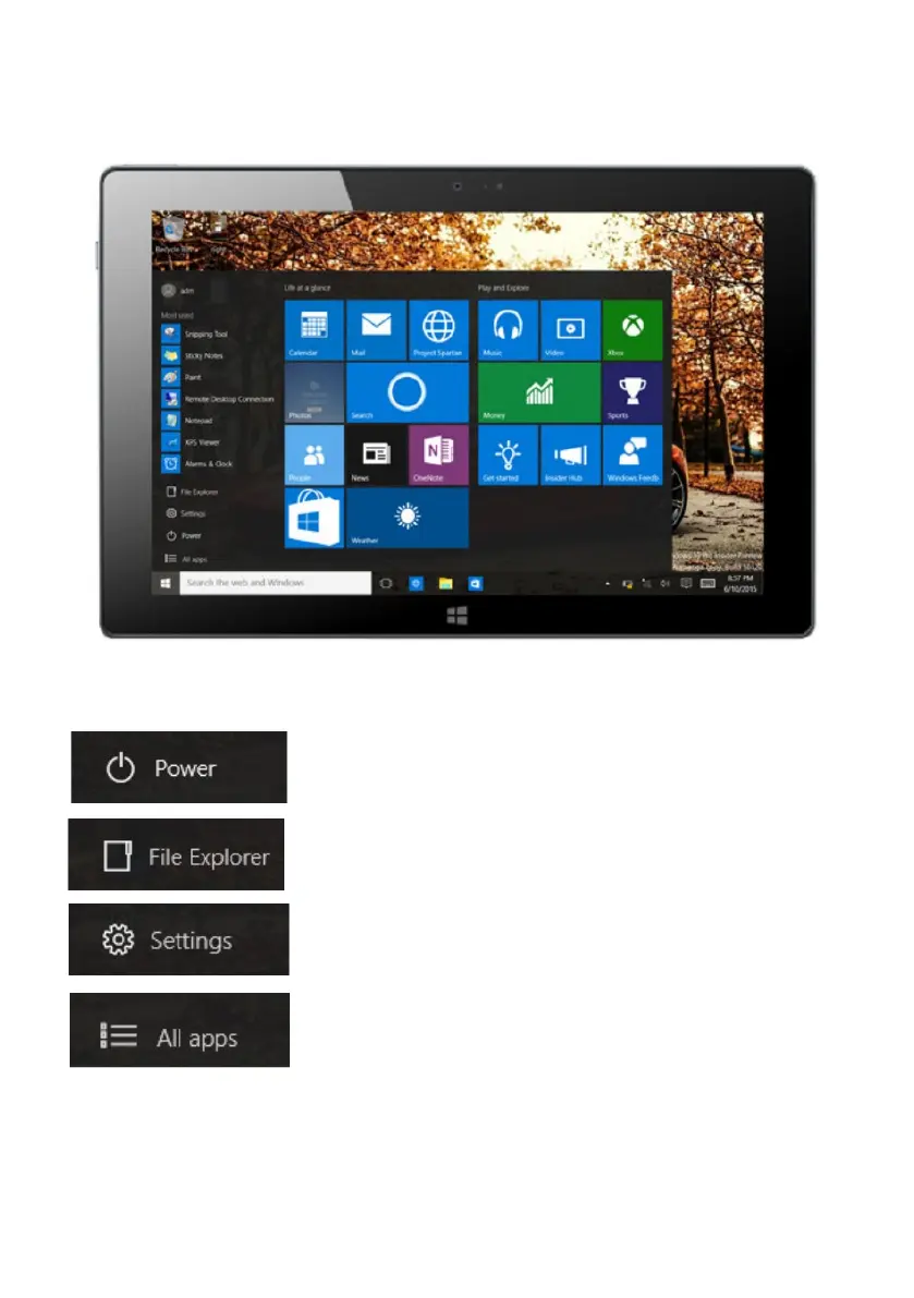 File Explorer, Settings, Power and All apps