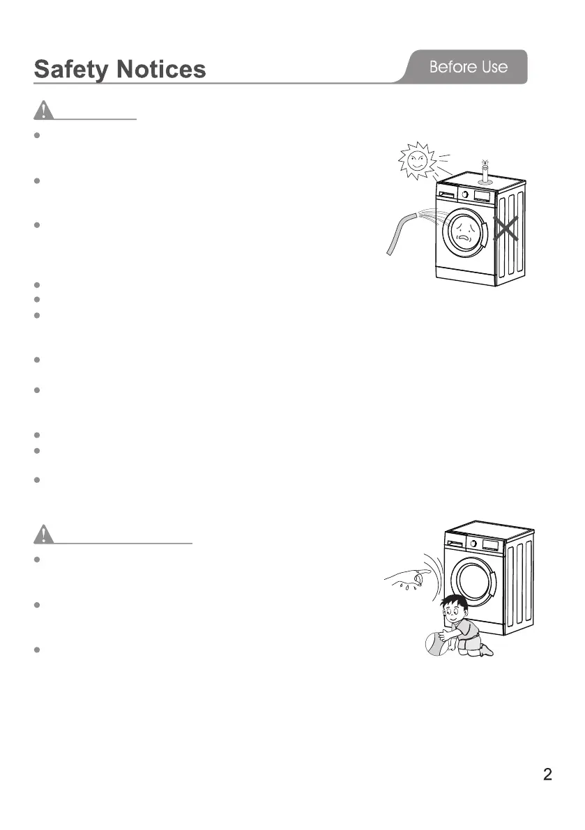 Keep the washing machine away from fire or heat sources.