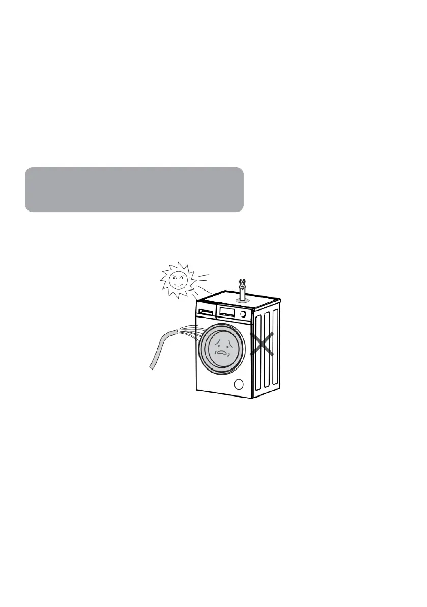 • Do not install the washer-dryer in direct sunlight, as this may damage the plastic