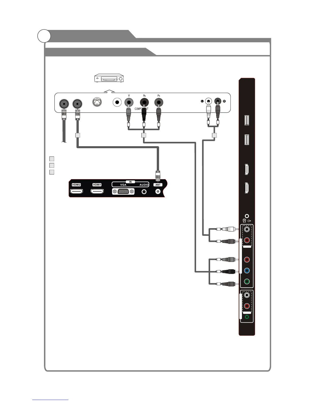 Note: 1. Whenever you connect an external device to your TV, make sure that power on