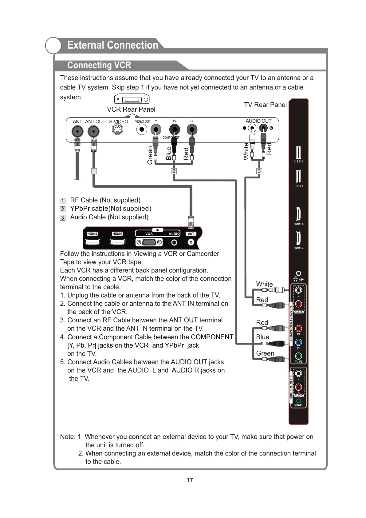 Note: 1. Whenever you connect an external device to your TV, make sure that power on