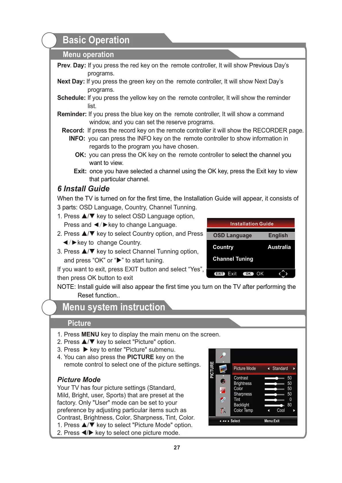 Prev.Day: If you press the red key on the remote controller, It will show Day’s