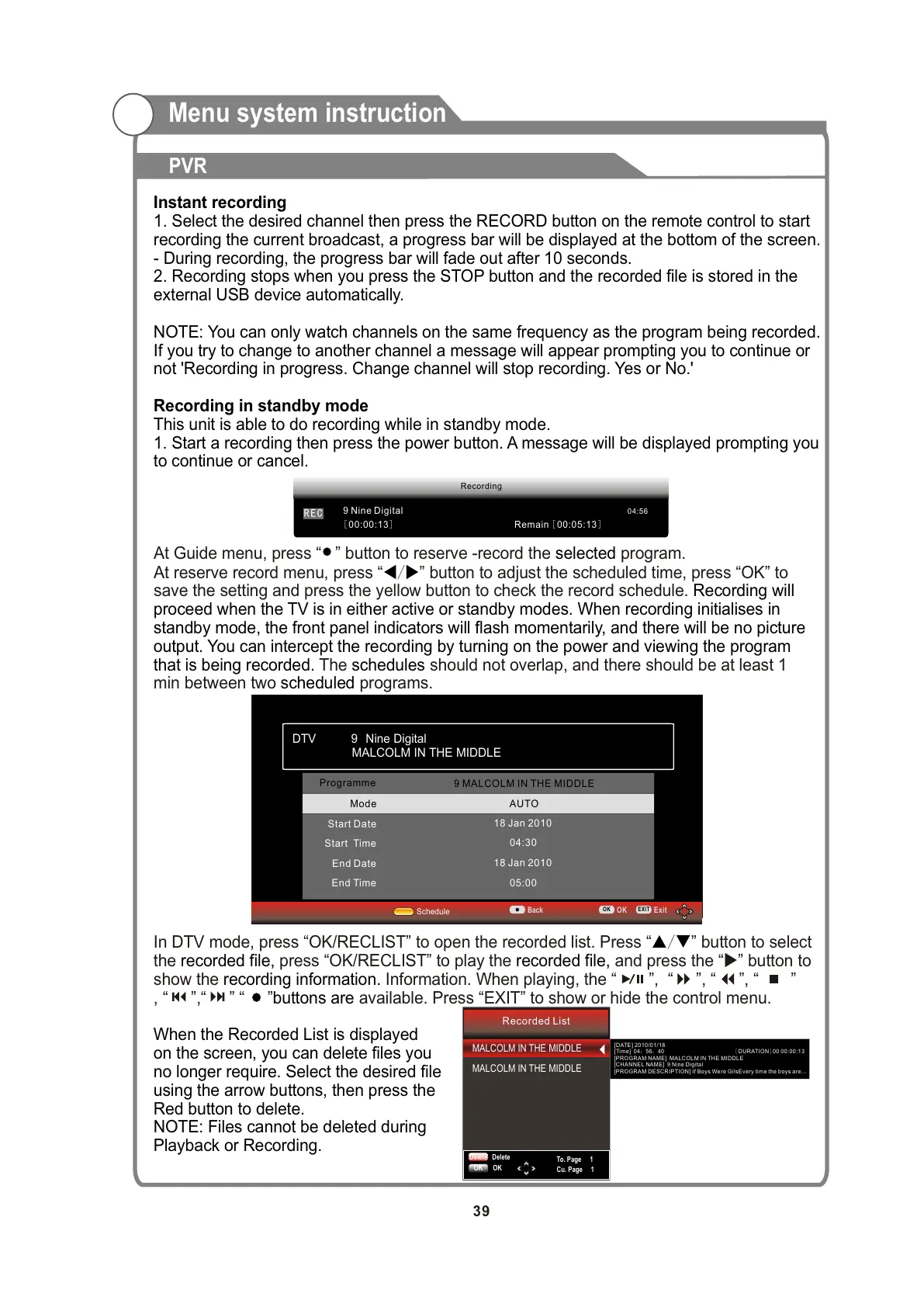proceed when the TV is in either active or standby modes. When recording initialises in