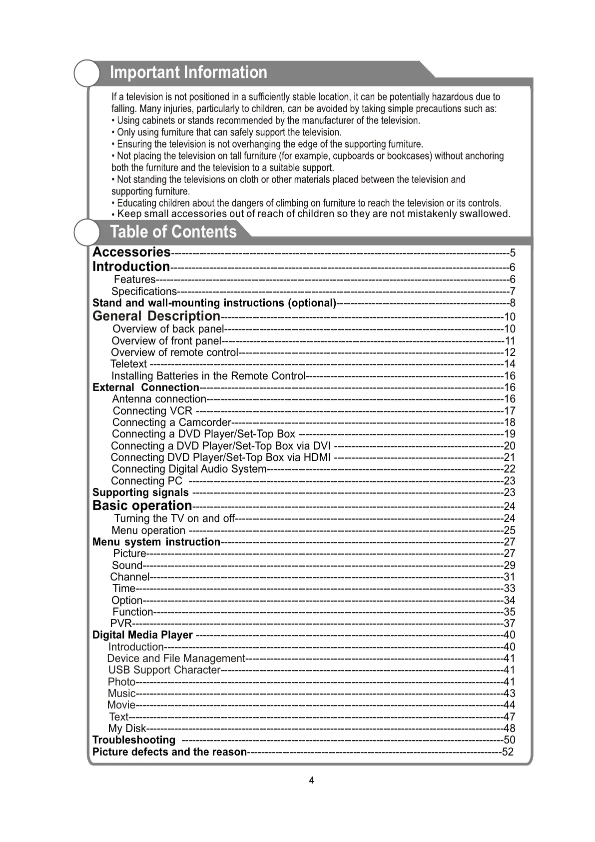 Stand and wall-mounting instructions (optional)-------------------------------------------------8