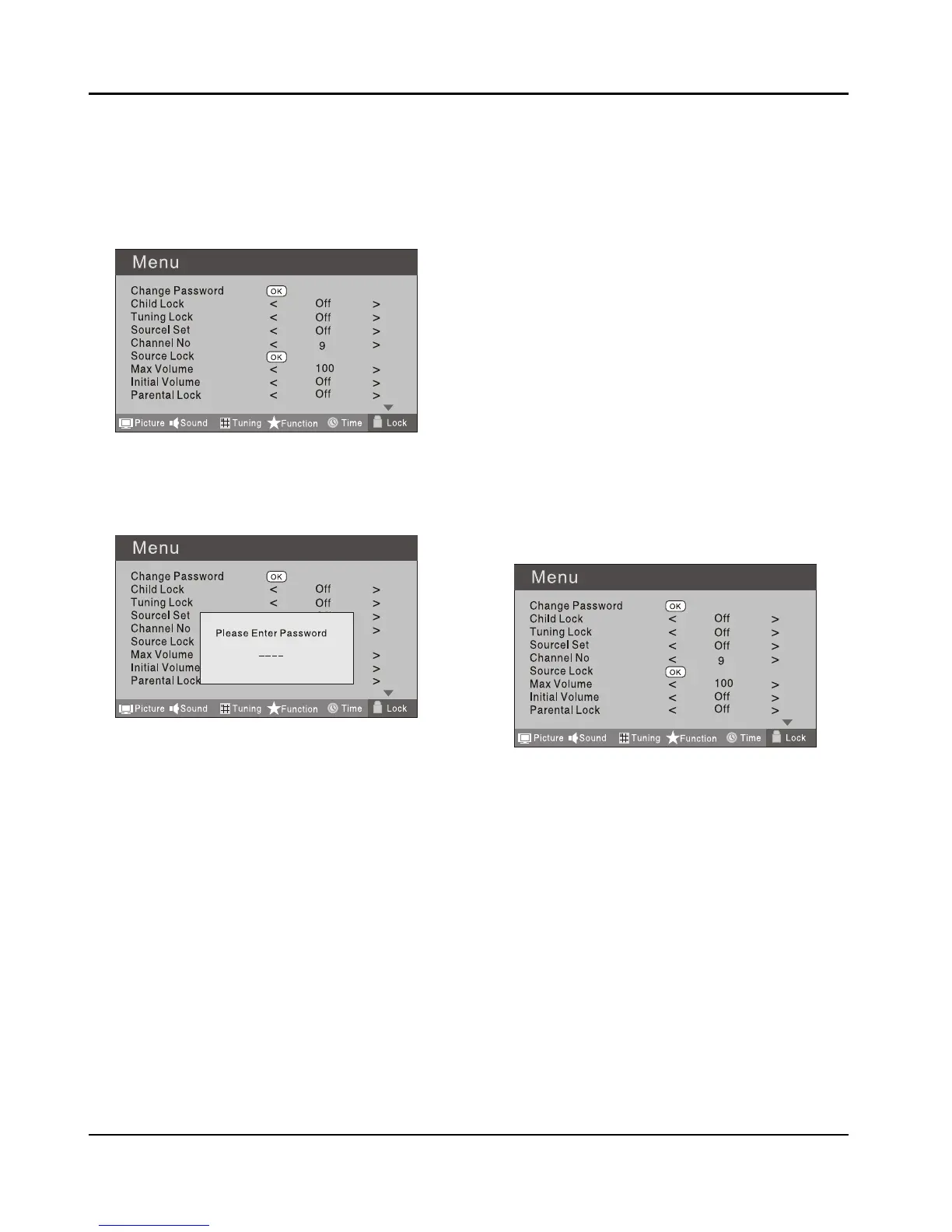 Press 5 to select Tuner Lock and 3 to set On/O.