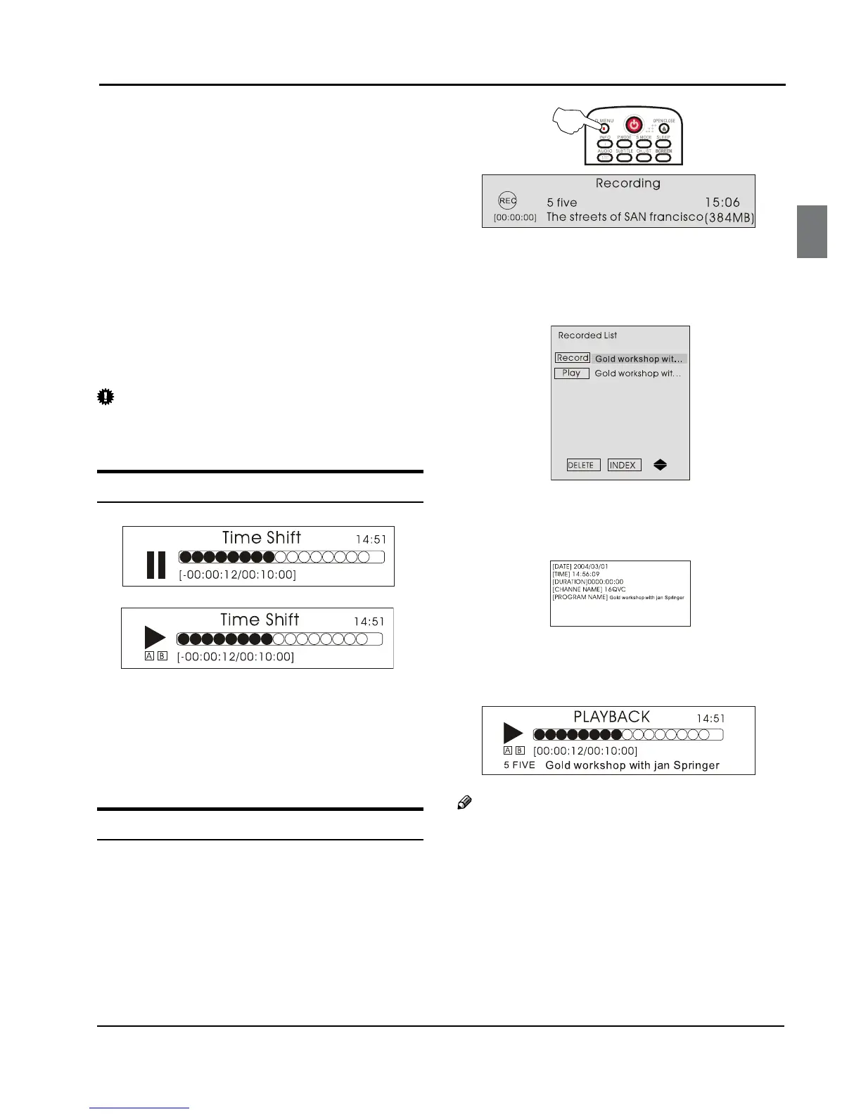 the time shift. When the recorded program is being
