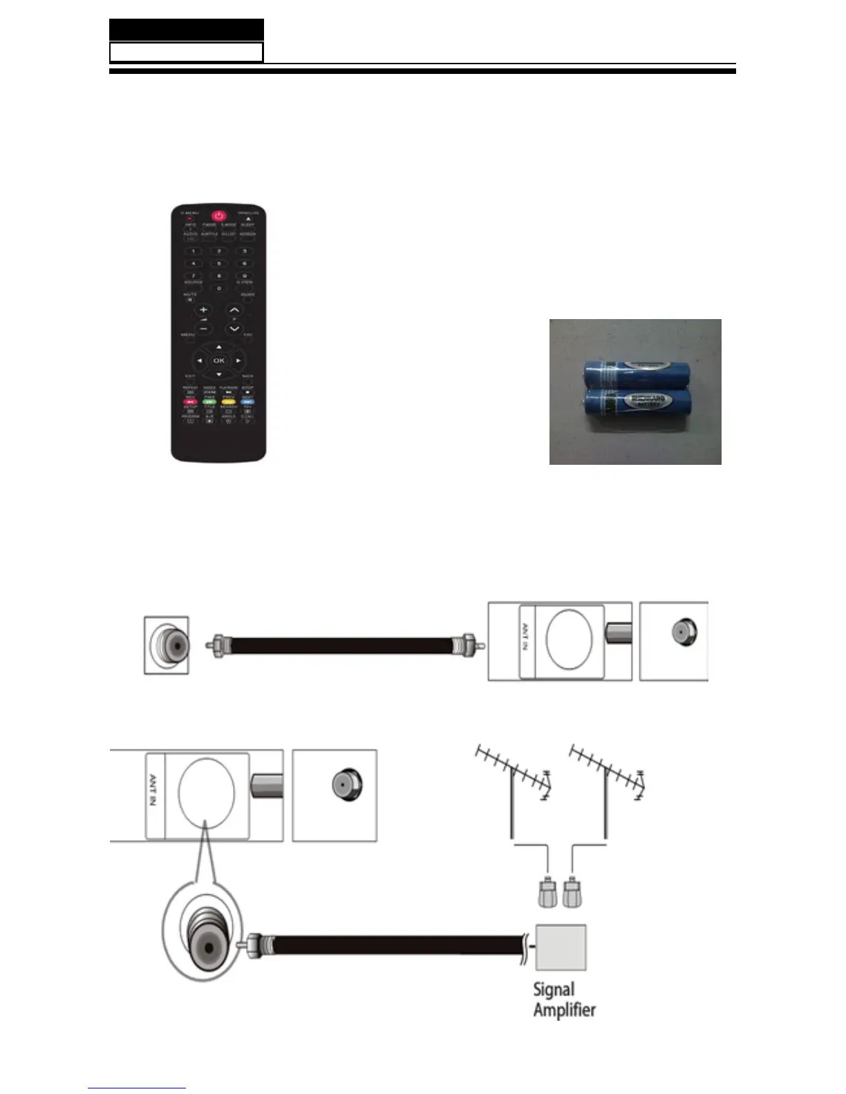 Connect one end of a coaxial cable (not included) to the ANT IN jack on the back of your TV/DVD