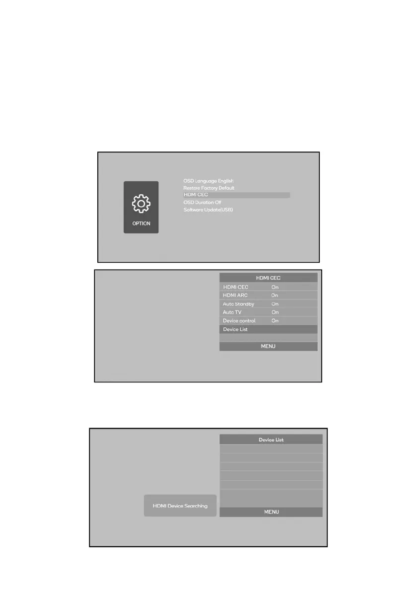 2. Choose SETTING > OPTION > HDMI CEC > Device List