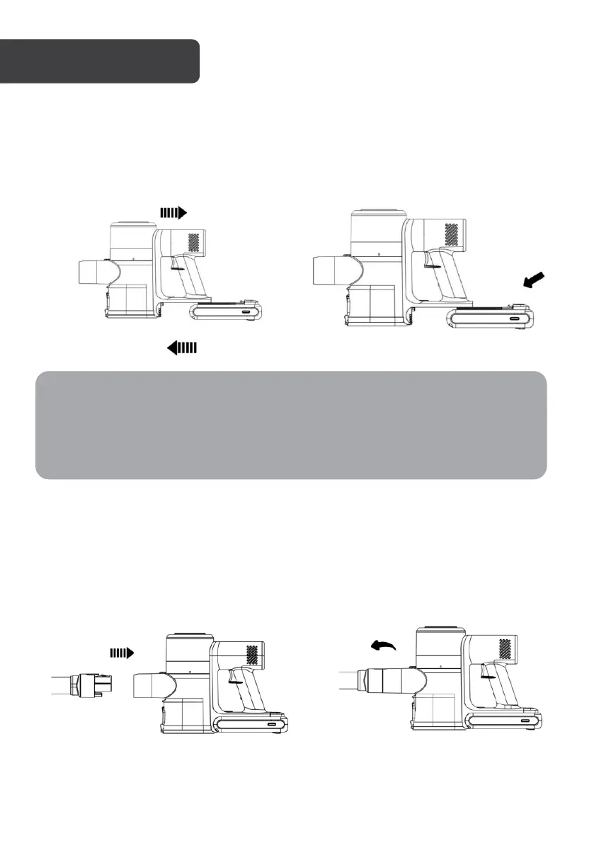 Assembly: Insert the extension tube into vacuum body and push it in until it audibly clicks.