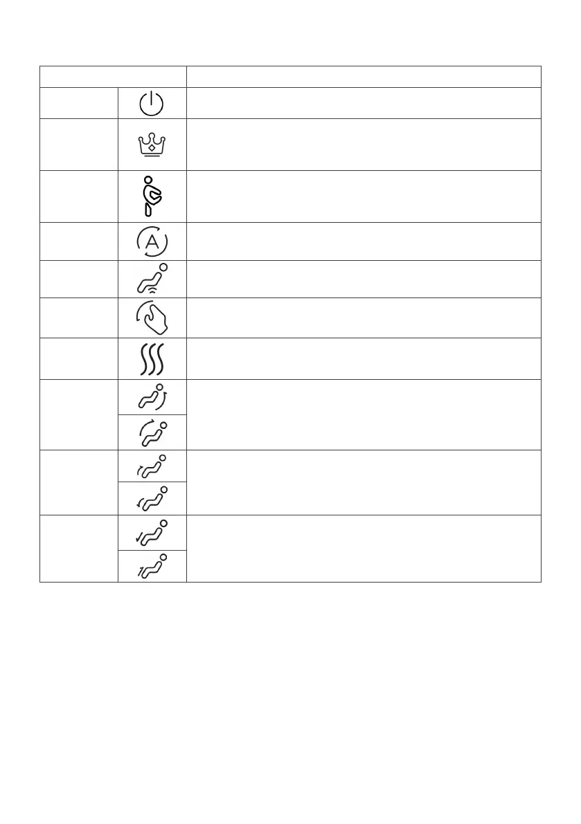 Press to turn the massage rollers on the hip on/off and