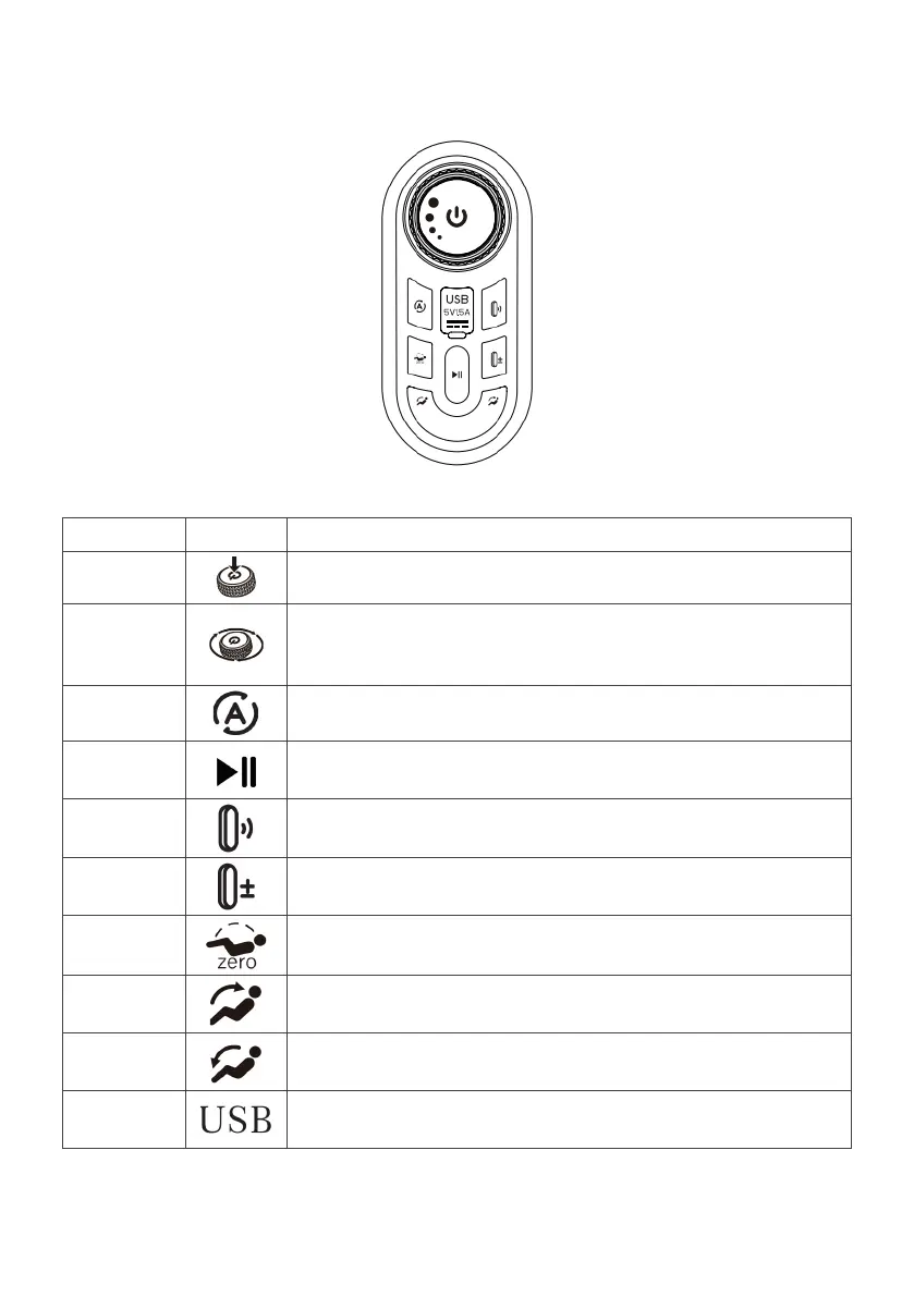 Press this button to activate or deactivate the massage chair.