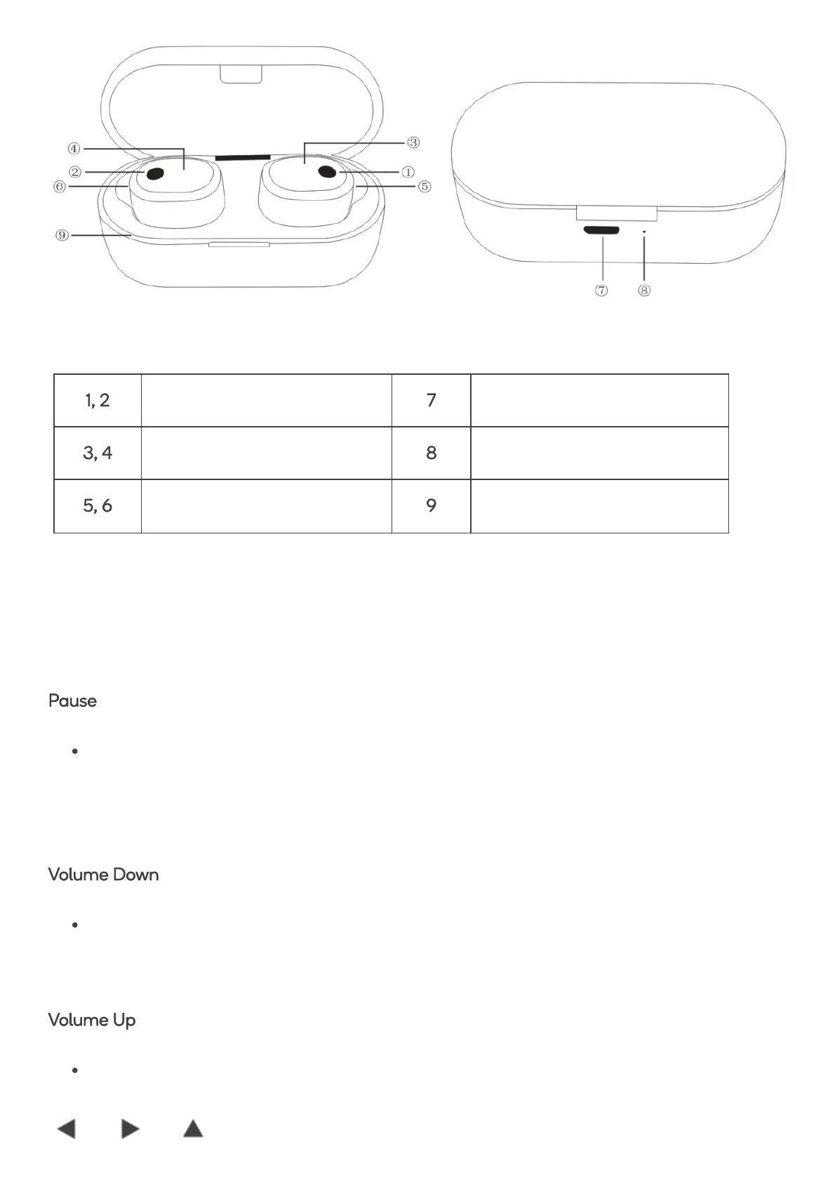 1, 2 Multi-function button 7 Charging port (Micro USB)