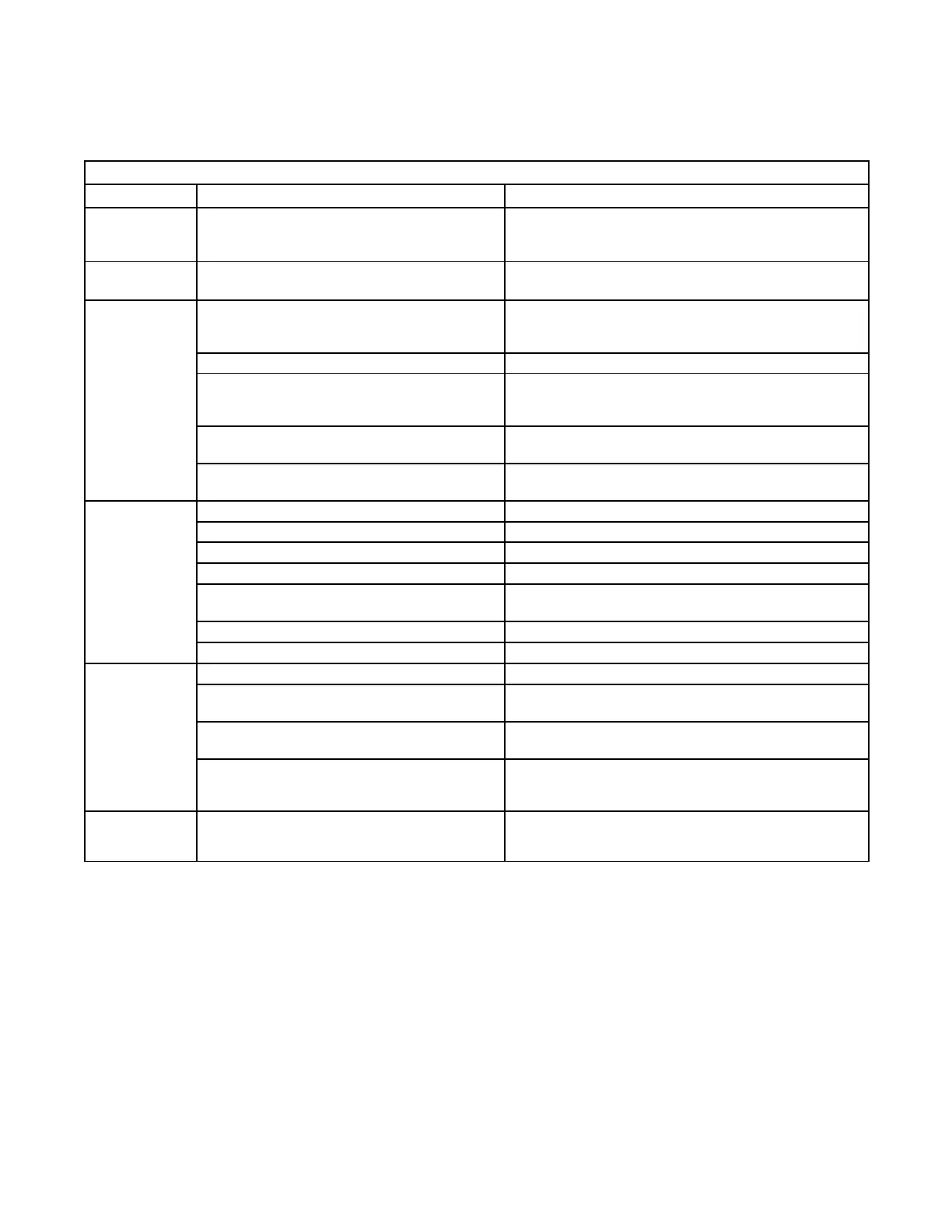 Troubleshooting Table