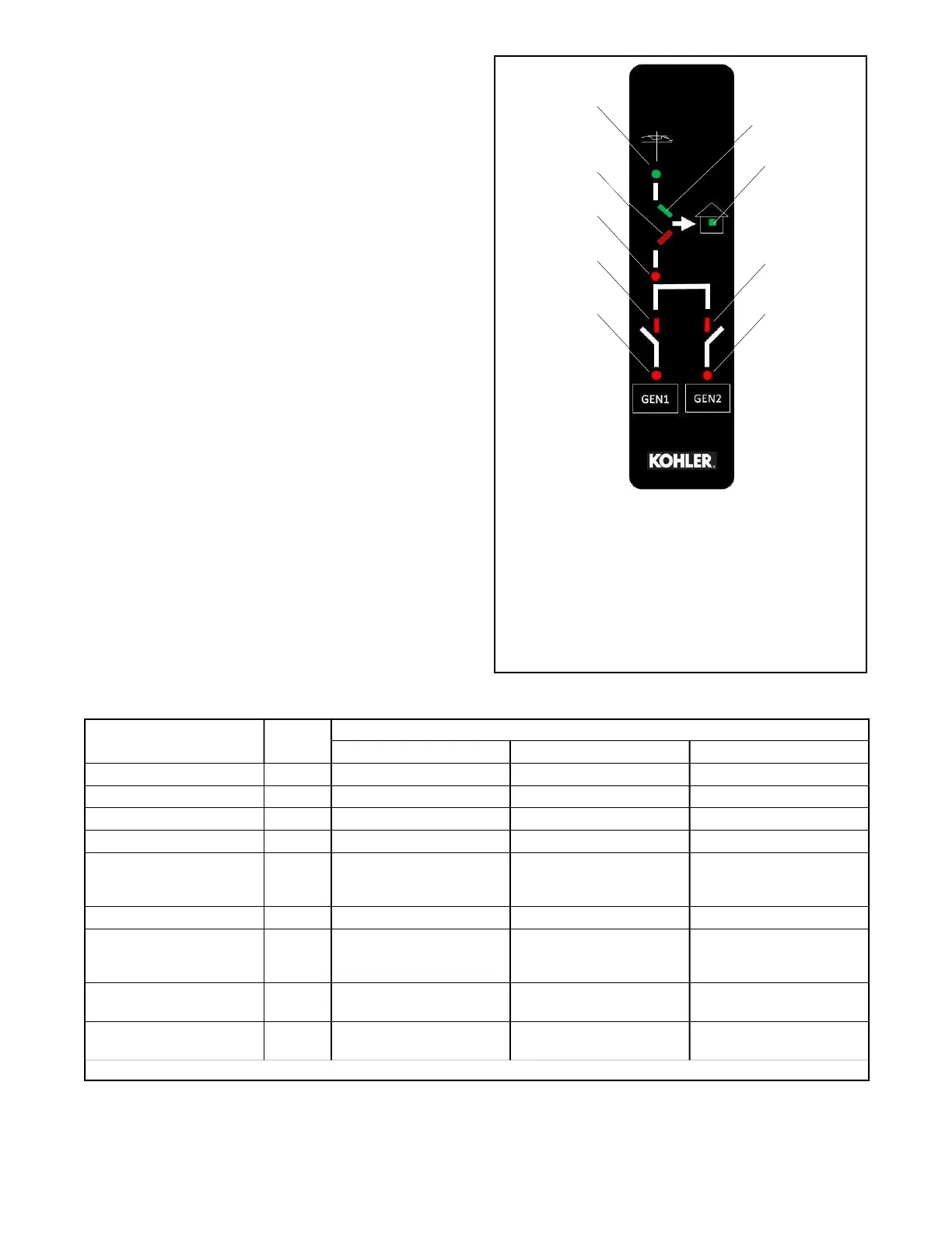 GEN2 status Red Not running Genset fault Generator is running