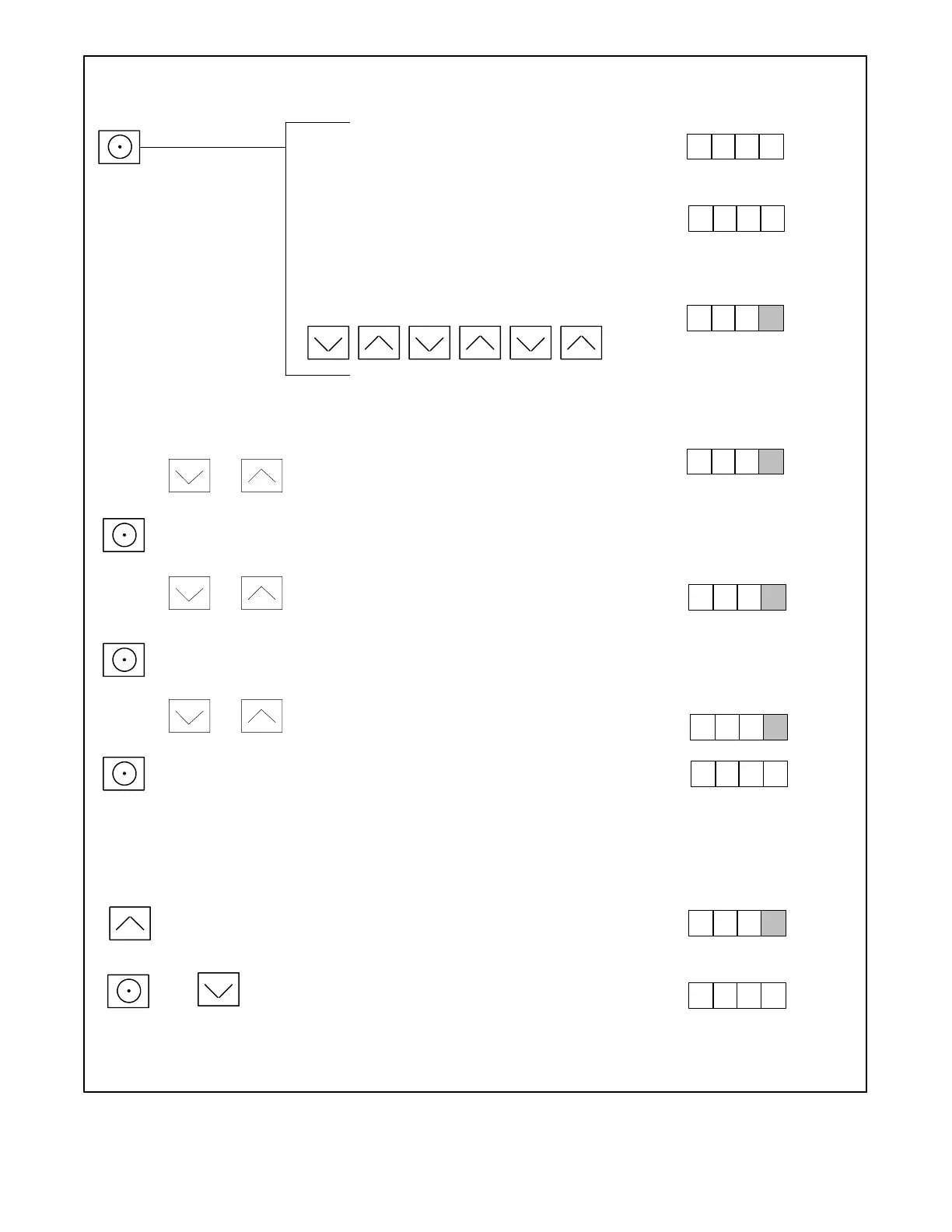 Note: Shaded boxes show which number in the controller display changes when the up or down arrow