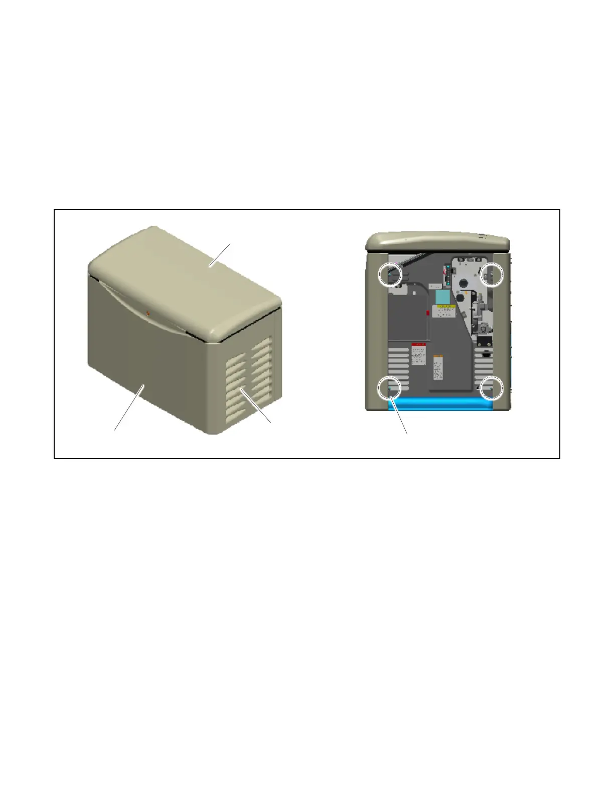The battery, fuel system, and some electrical connections are located in the air intake area. Remove the enclosure panel to
