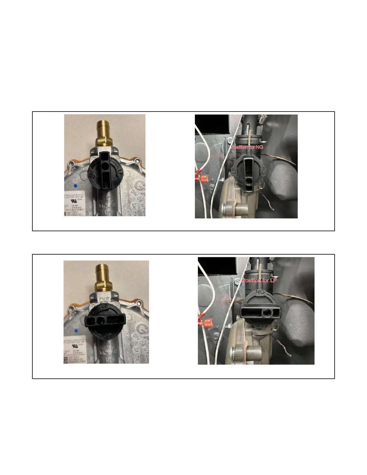 a. For natural gas (NG), turn the selection knob all the way clockwise. The knob lines up with the UP arrow on