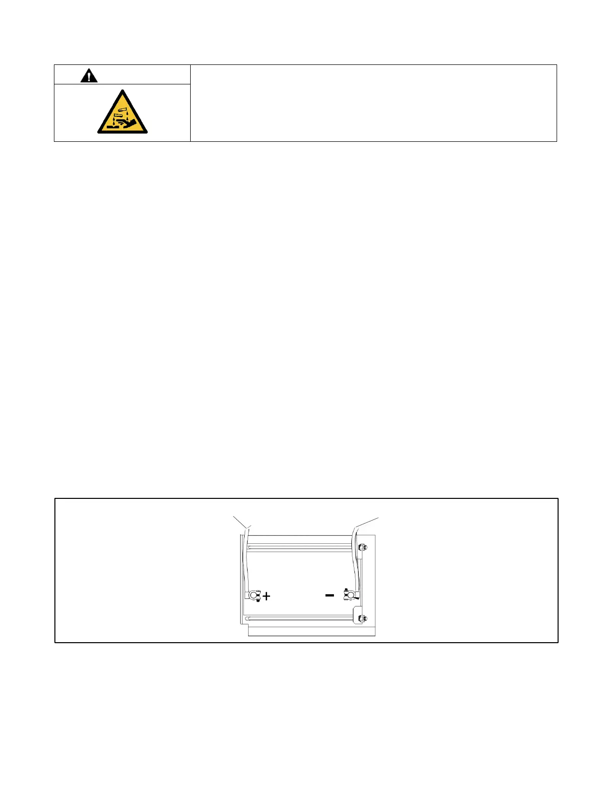 negative (–) lead last when reconnecting the battery. Never connect the negative (–) battery cable to the positive (+) connection