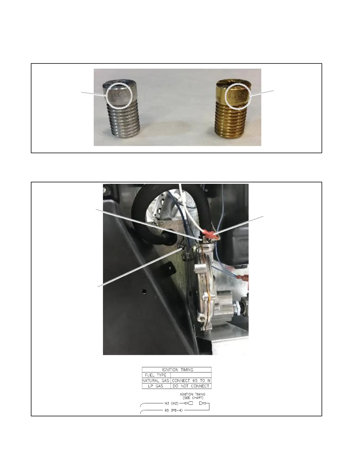 For natural gas and LPG fuel, orifice fittings are used in the fuel line. See Figure 12. The natural gas orifice fitting is silver in