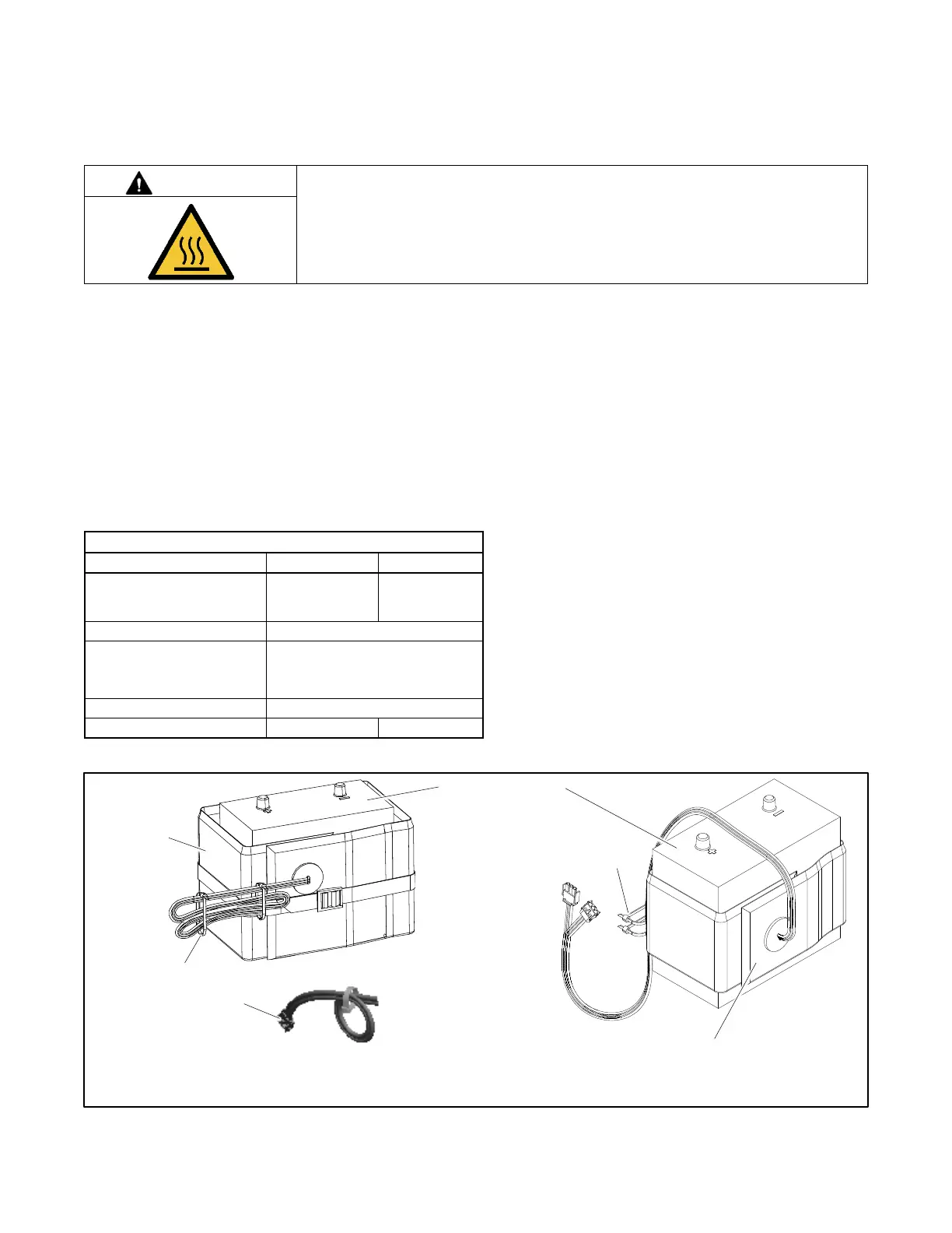 Servicing the engine heater. Hot parts can cause minor personal injury or property damage. Install the heater before