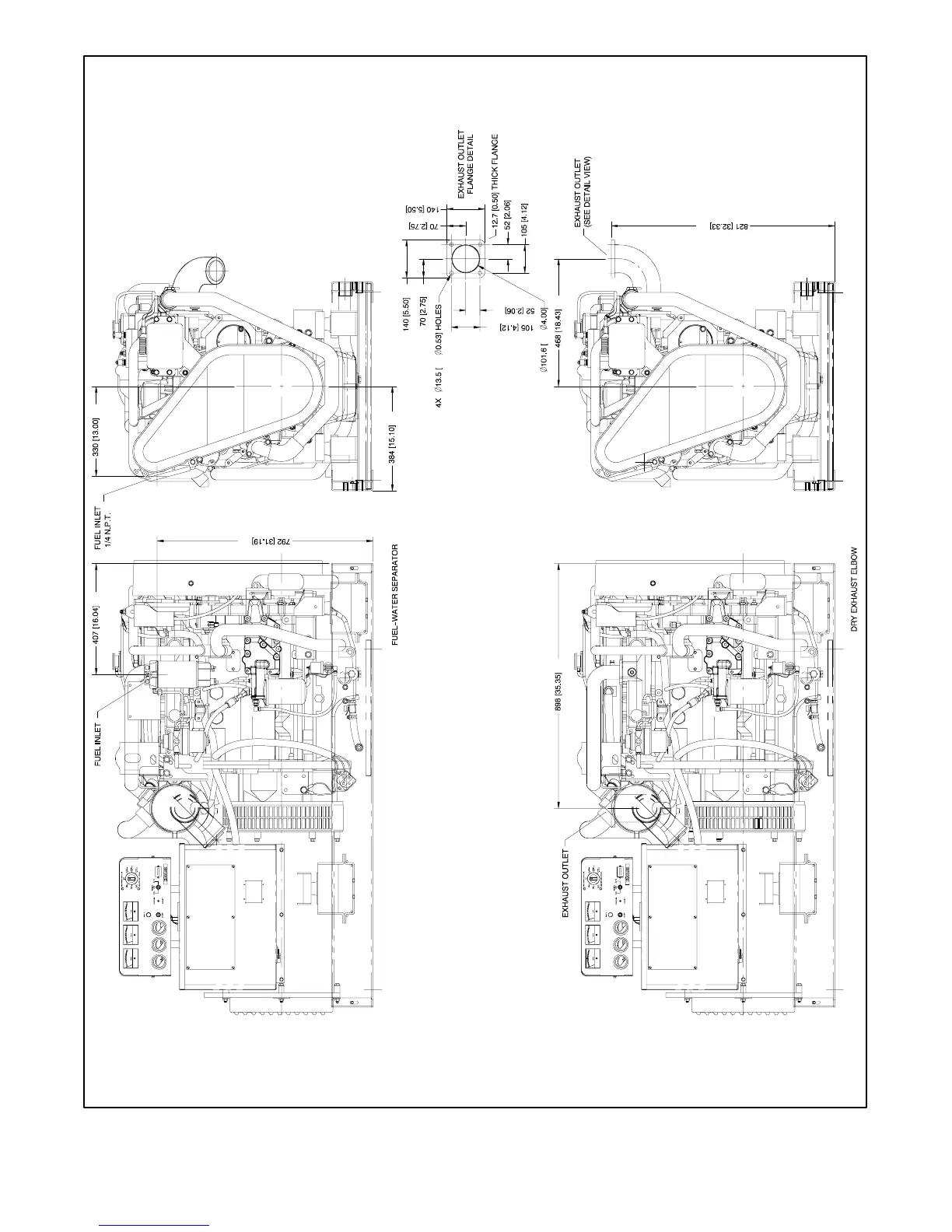 Figure 7-25 Dimension Drawing, 40EFOZ/50EOZ with Fuel/Water Separator and Dry Exhaust Elbow