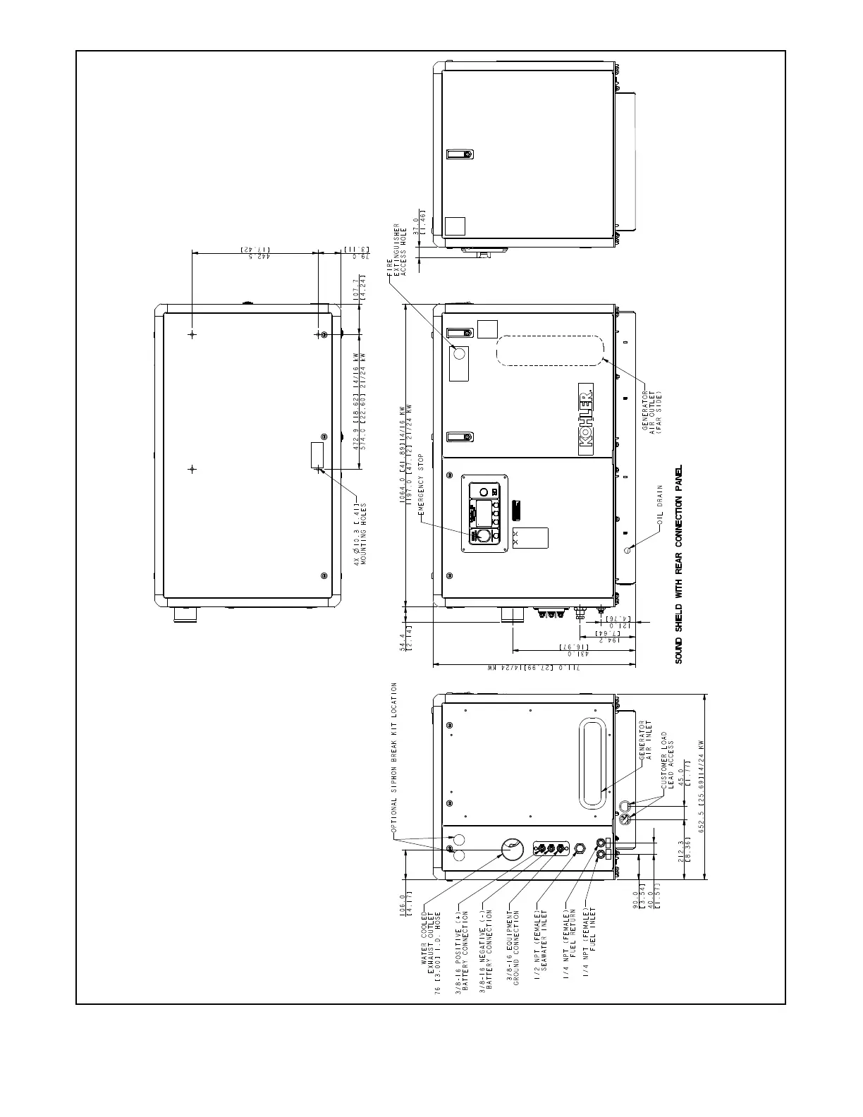 Figure 7-6 Dimension Drawing—Sound Shield, 14--24EKOZD and 12--20.5EFKOZD (Sheet 1 of 2)