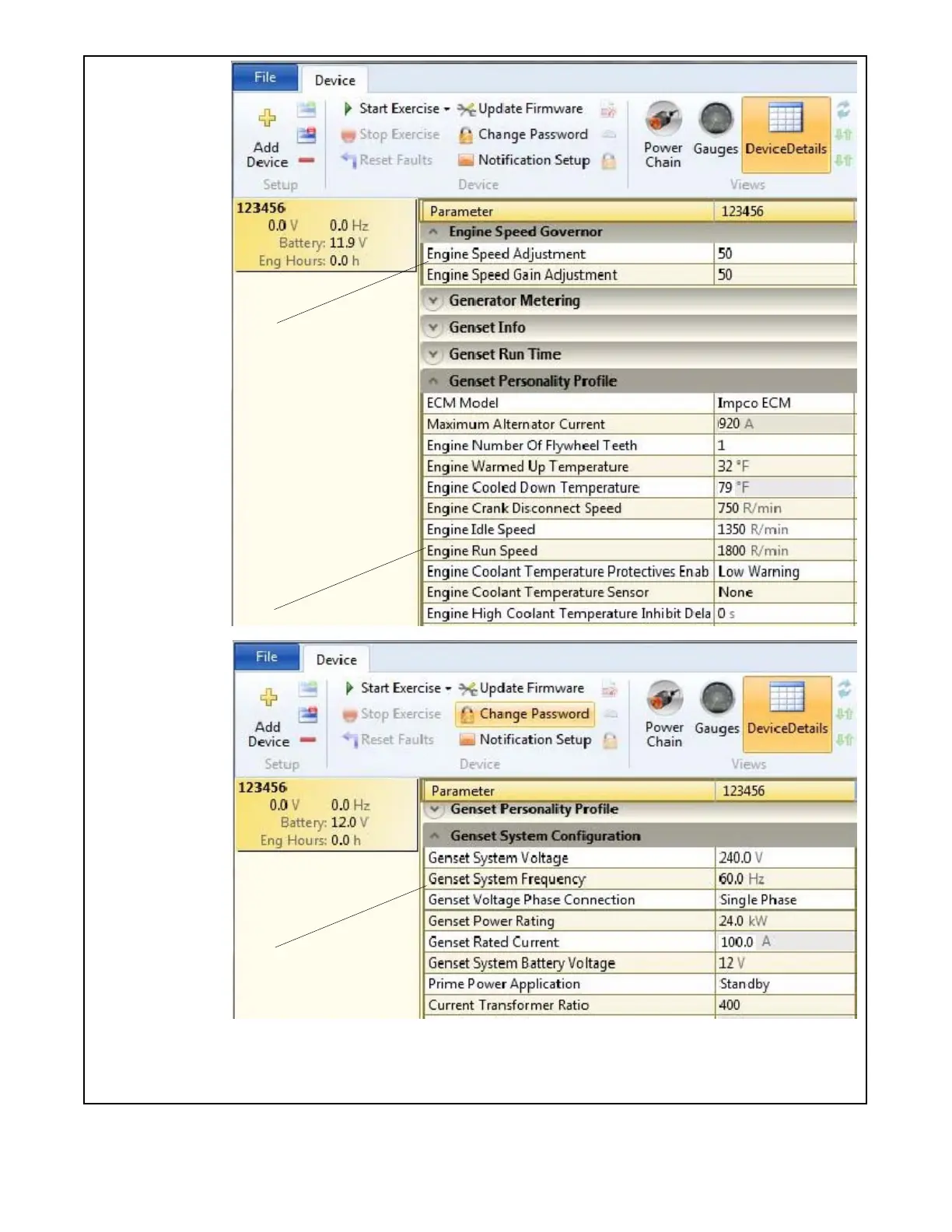 Figure 6-6 Engine Speed and Frequency Adjustments in SiteTech
