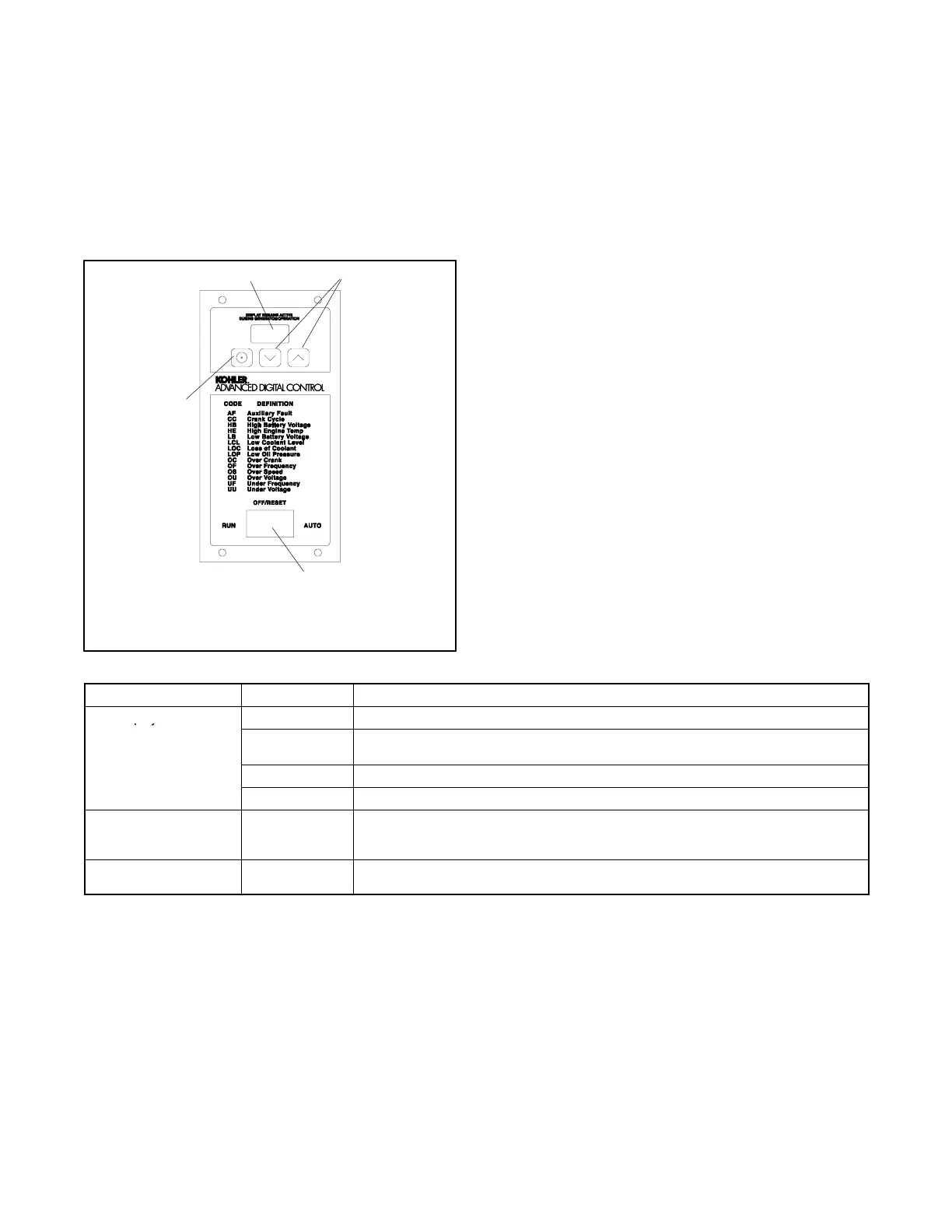 Fault codes Flashes a 2- or 3-letter fault code to indicate various fault conditions. See Section 2.6.4.