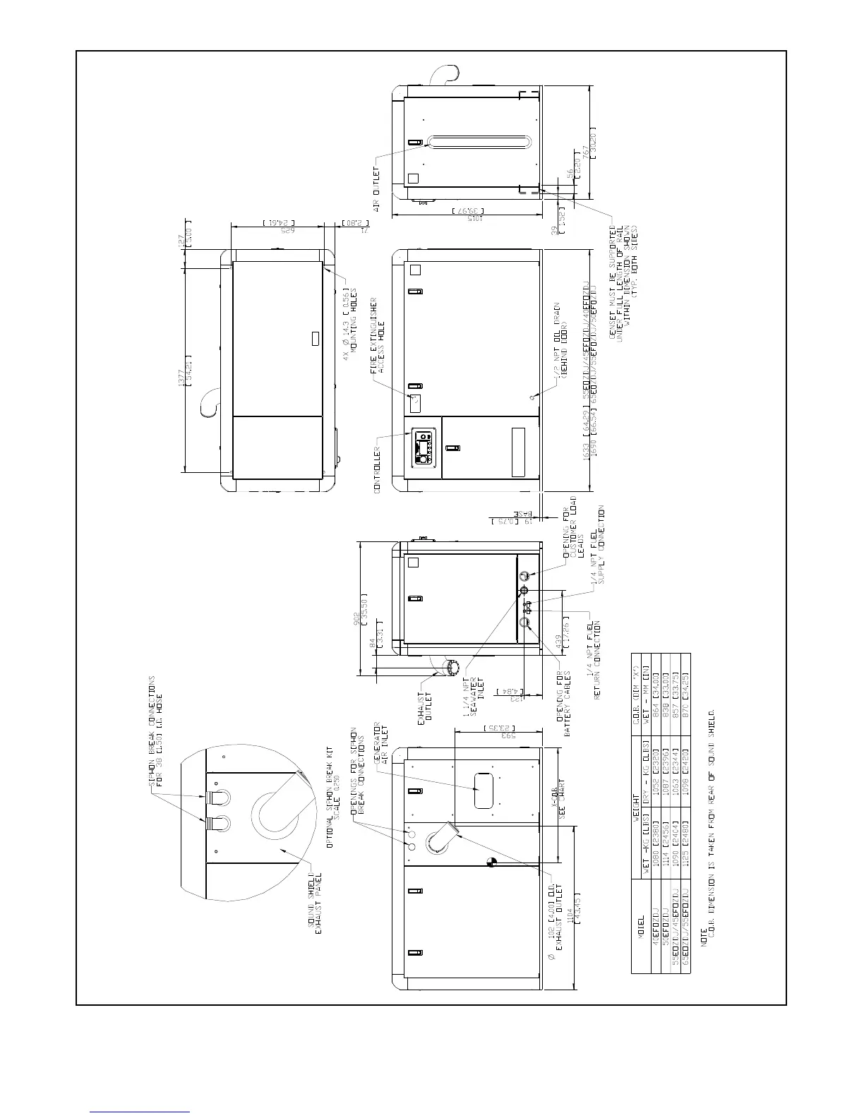 Figure 7-7 Dimension Drawing, 40/50EFOZDJ & 55/65EOZDJ & 45/55EFOZDJ (with Sound Shield)