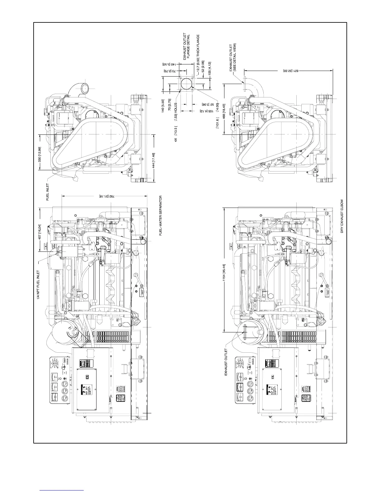 Figure 7-33 Dimension Drawing, 70/80EFOZ and 80/99EOZ with Fuel/Water Separator and Dry Exhaust Elbow