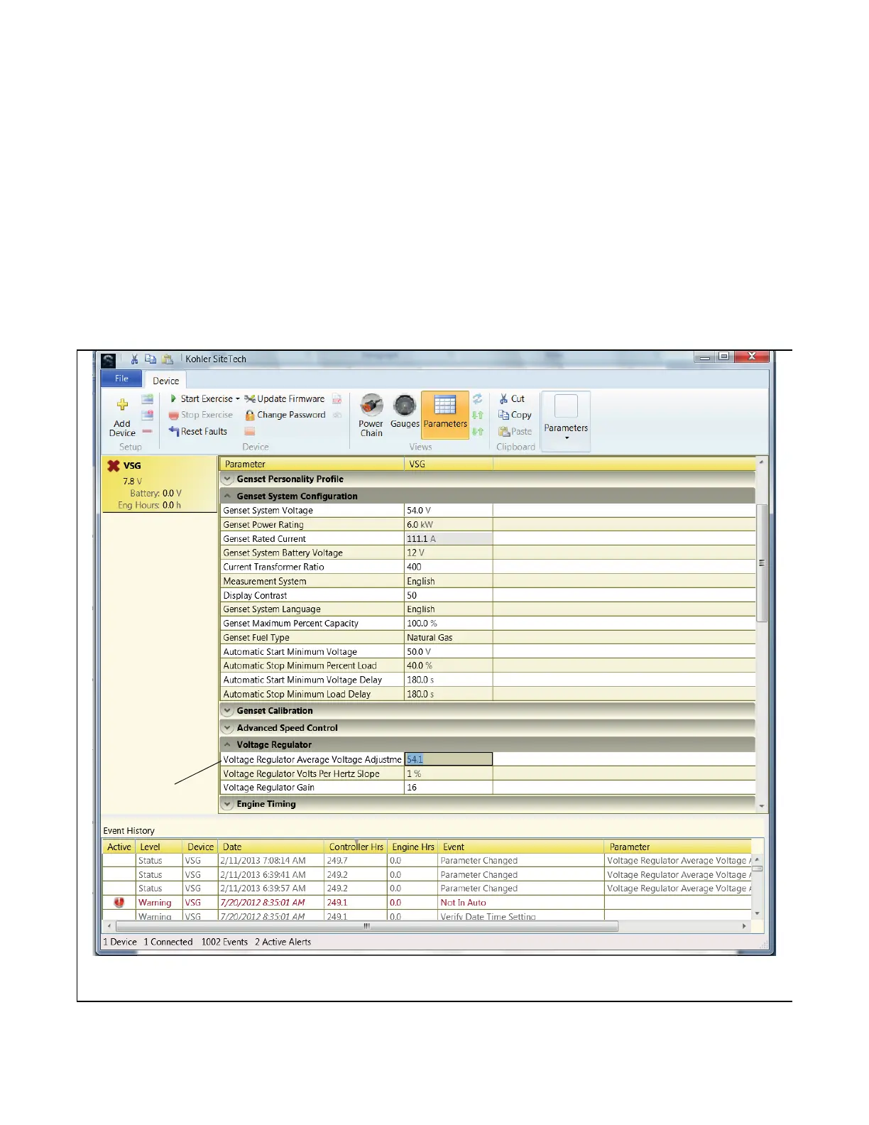Figure 5-12 Voltage Regulator Average Voltage Adjustment Using SiteTech