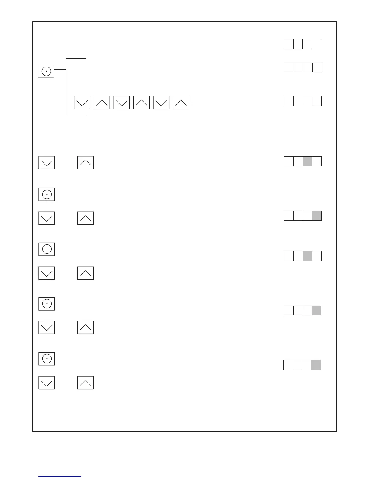 * Shaded boxes show which character in the controller display changes for each adjustment. X in the