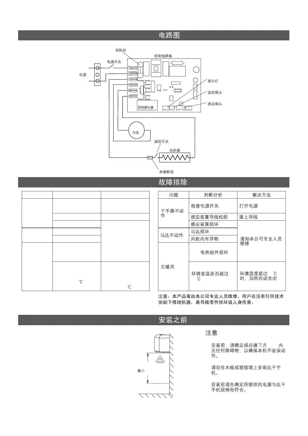 2. Never install hand dryer onto a