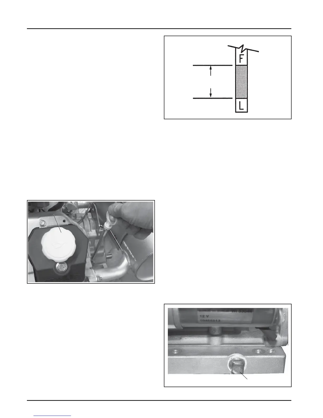 2. Remove one of the oil drain plugs, oil fi ll cap,