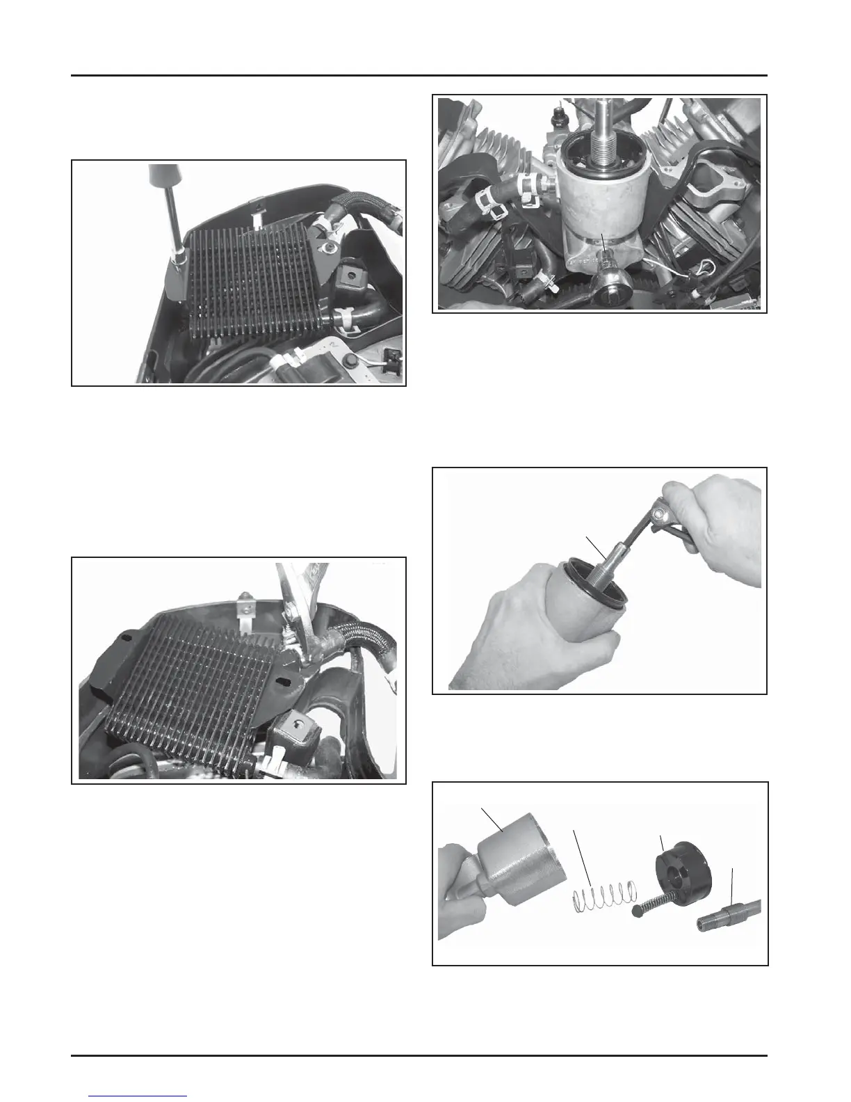 b. Remove the oil fi lter cup and spring from