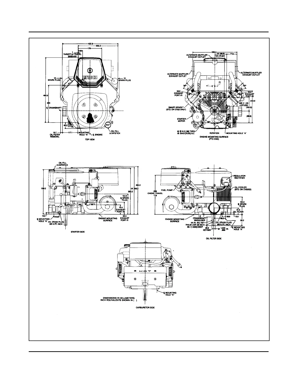 Figure 1-5. Typical Engine Dimensions CV Series with Commercial Mower Air Cleaner.