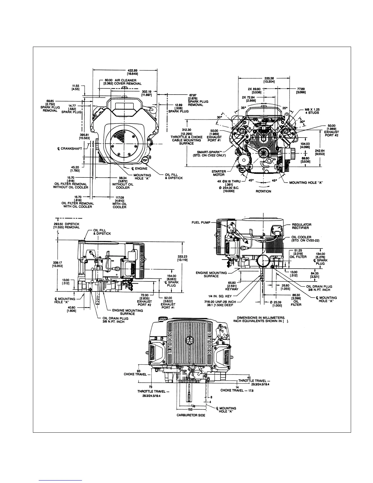 Engine Dimensions with Low-Prole Air Cleaner
